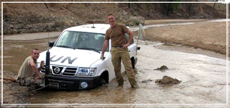 Nalazili smo se u nekoj afričkoj divljini udaljeni od civilizacije nekoliko sati vožnje autom a temperatura zraka preko 40 stepeni. Naravno u takve patrole su uvijek nosi hrana i rezerva vode za piće. Naš terenac je imao čekrk sa samoizvlačenje ali je problem bio ispred auta nismo imali ništa za šta bi se "zakačili", ni drvo ni kakvu stijenu ili nešto slično. Prvo smo javili dežurnom tačne koordinate i kakva je situacija te tražili da pošalju drugu patrolu kako bi nas drugo vozilo izvuklo.
