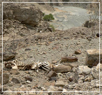 Povremeno smo izlazili iz suhog riječnog korita, vozili preko kamenjara, prolazili izmedju stijena. Barba je često izlazio iz auta da bi me navodio jer je ponekad bilo nemoguće proći preko neke od mnogih prepreka bez pomoći jednog od kolega izvana. Tako smo došli i do suhog korita rijeke koja je nekada bila široka i do 200 metara. Čovjek se zapita - prije koliko godina je tu tekla ovako ogromna i moćna rijeka? A sada - ni kapi vode!