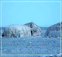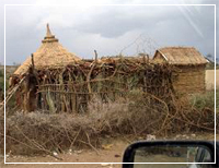 Kako smo više odmicali pitali smo se da li će se uskoro pojaviti, već iz daljine prepoznatljiva, kao snijeg bijela so. Zaobilazimo planine i stjenovita brda, u nadi da, već iza sljedećeg brda, ćemo ugledati naše odredište. Put se razvukao. Već, skoro, 8 sati se vozimo po kamenjaru. Iza posljednjeg brda otvara se pustinja, ravnica. Vozimo tako i ugledamo jedno Afarsko selo. Kućice prekrivene govedjom kožom a ispod je konstrukcija od bambusa. Takvih kućica je bilo 5-6 na jednom mjestu, usred ničega.